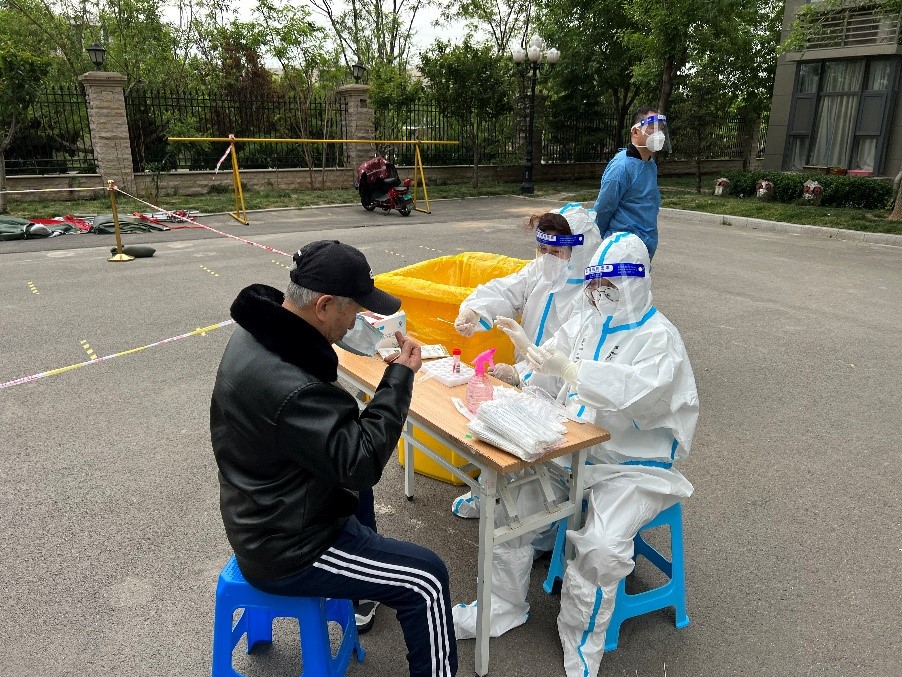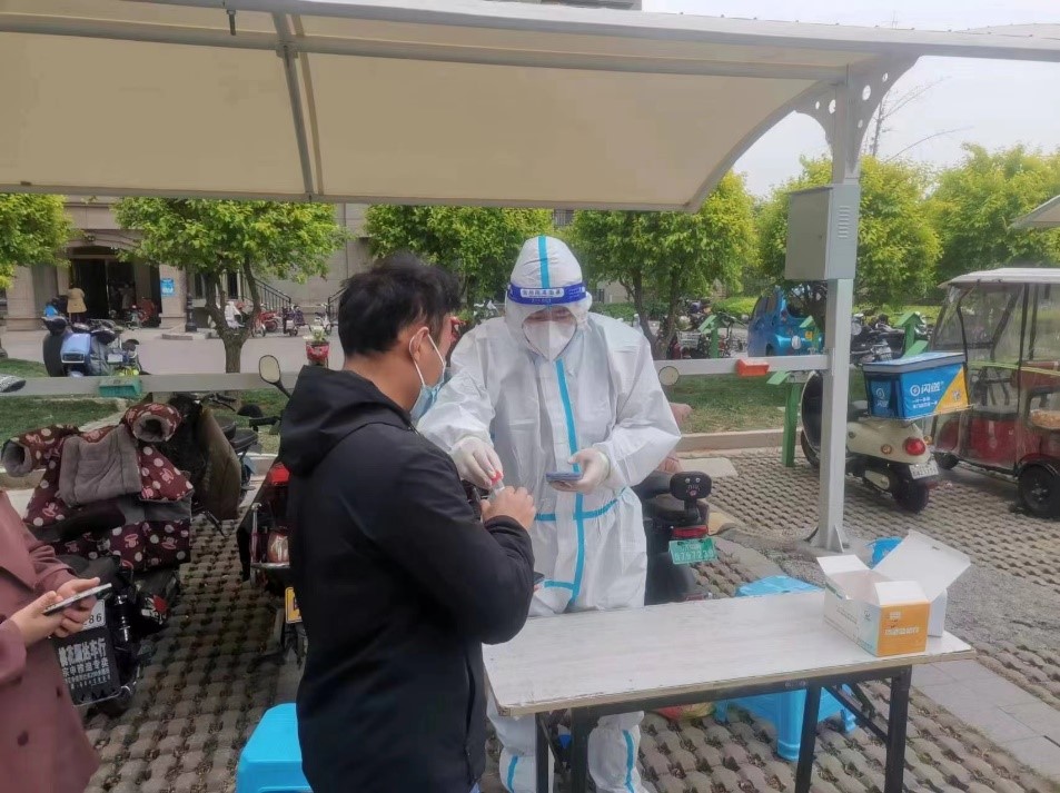 剛結(jié)束固定社區(qū)服務(wù)的于海龍、張波,又主動要求參與此次抗疫行動。同是退伍軍人又是黨員的他們,在核酸檢測點搬運桌椅、清點防控物資、登記核酸檢測信息、發(fā)放核酸檢測貼紙,化身檢測點 “秩序員”“宣傳員”,彰顯退伍不褪色的軍人本色。